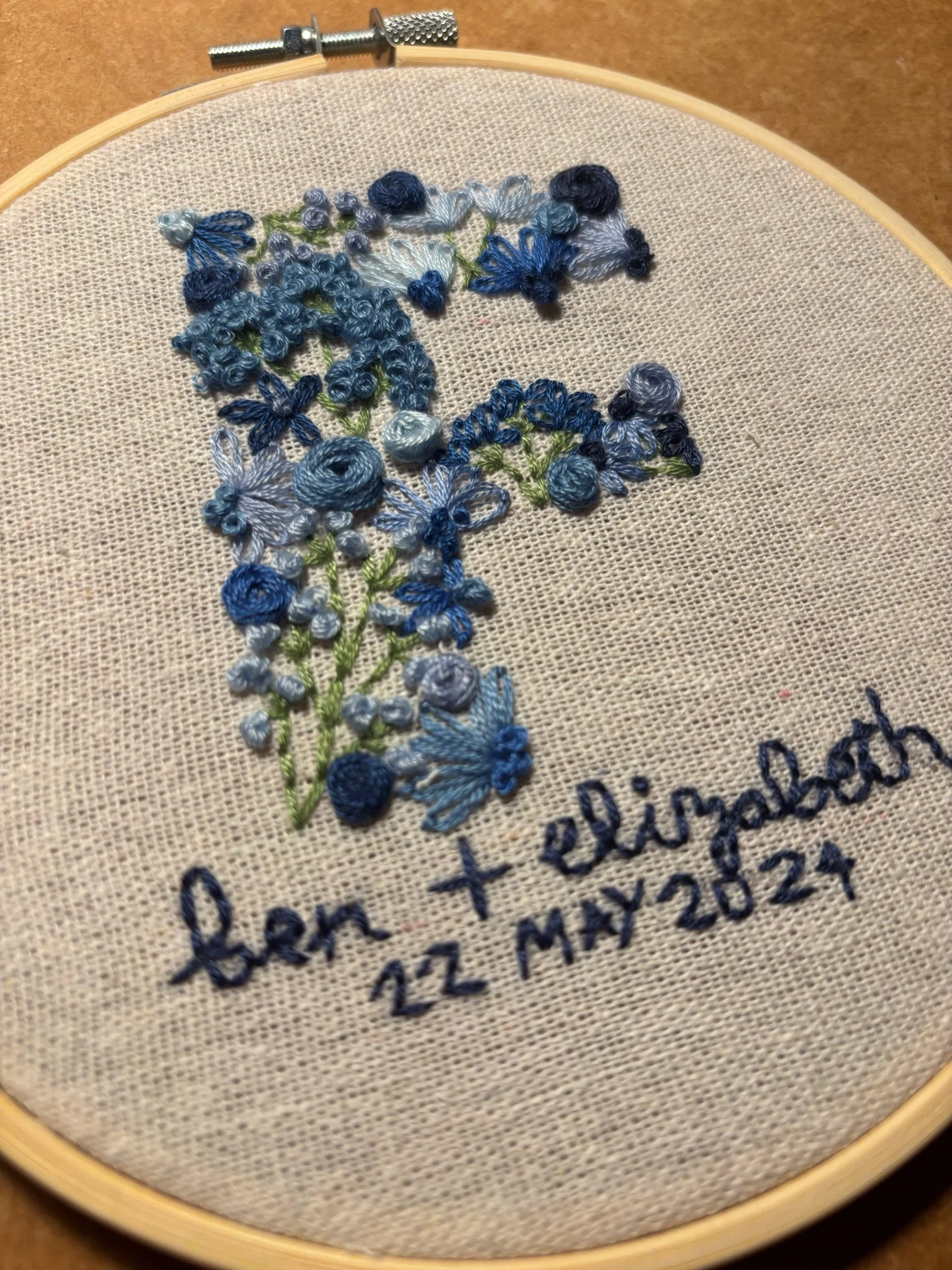 Each piece is made with high-quality cotton embroidery thread on un-bleached cotton-linen blend fabric. Each piece comes in a bamboo embroidery hoop, ready to hang on the wall or display on a shelf.